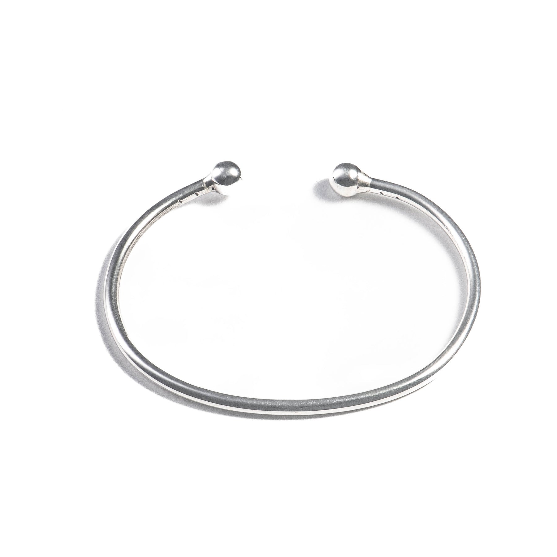 Clásica, delicada y versátil. Esta pulsera abierta destaca por su diseño limpio y elegante, rematado con dos delicadas esferas que le aportan equilibrio y un toque atemporal. Su silueta sencilla permite que se adapte a cualquier estilo, desde lo más casual hasta lo más sofisticado.