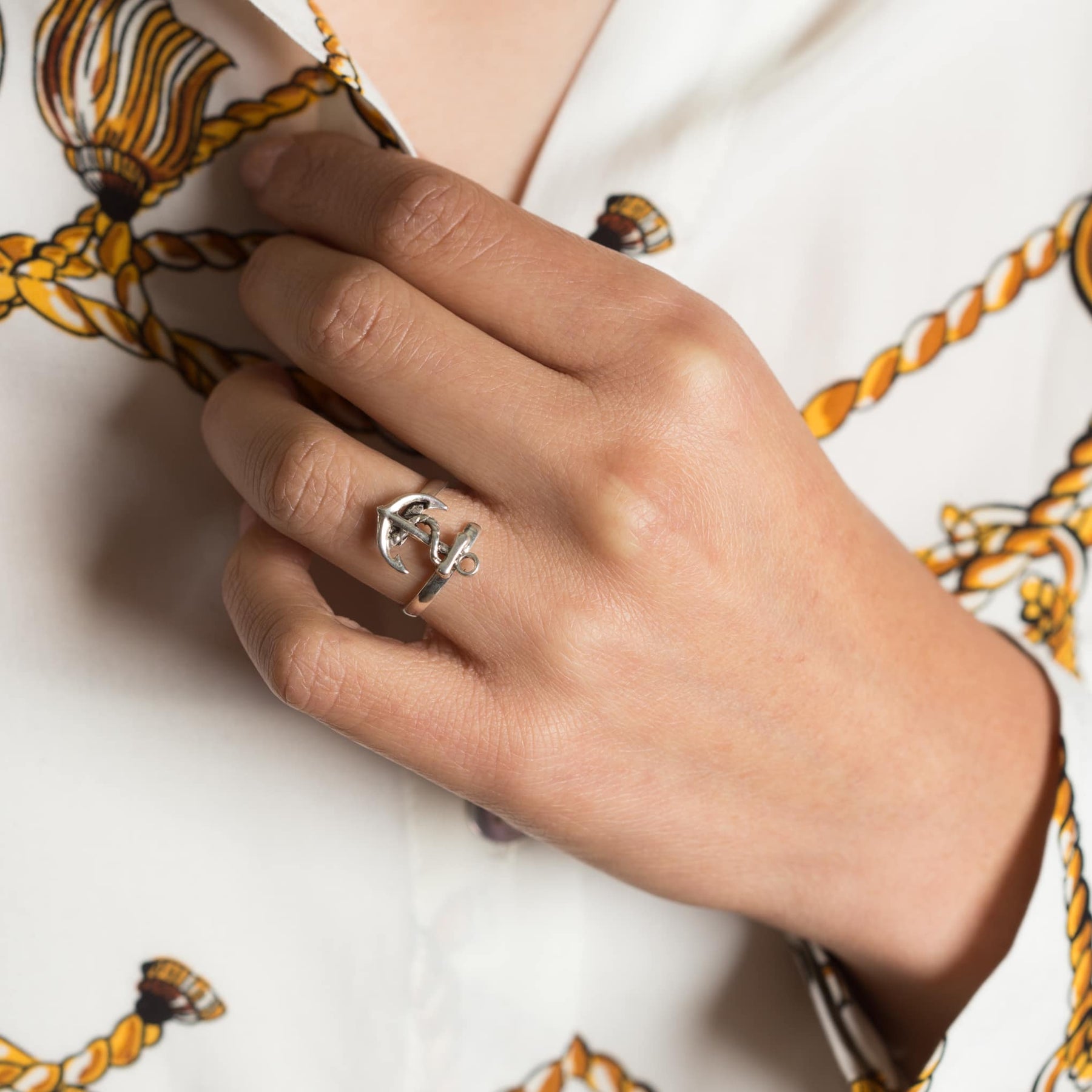 Anillo ajustable hecho de Plata ley .925, confeccionado con un ancla la cual se considera un símbolo universal de firmeza, solidez, tranquilidad y fidelidad. Este anillo tiene un acabado pavonado, el cual hace resaltar los detalles del ancla. "Pavonado es una técnica artesanal que se pone en la superficie de la plata con oxido ferroso dándole un acabado negro-grisáceo"