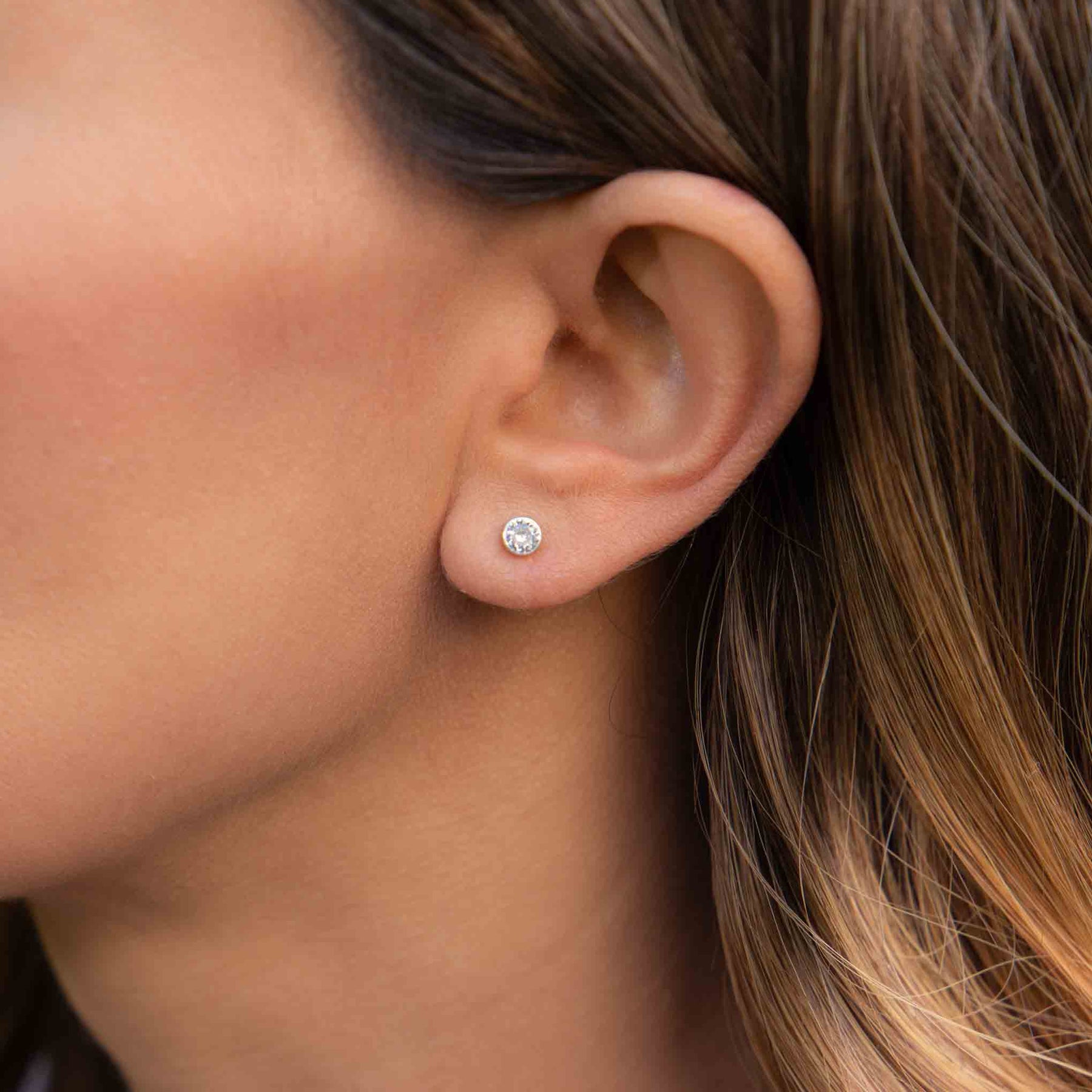 Lindos aretes tamaño mini de plata .925 circulares con incrustación de zirconia blanca para regalar un toque cálido a tu rostro, ideales para obsequiar a un ser querido y para su uso diario.