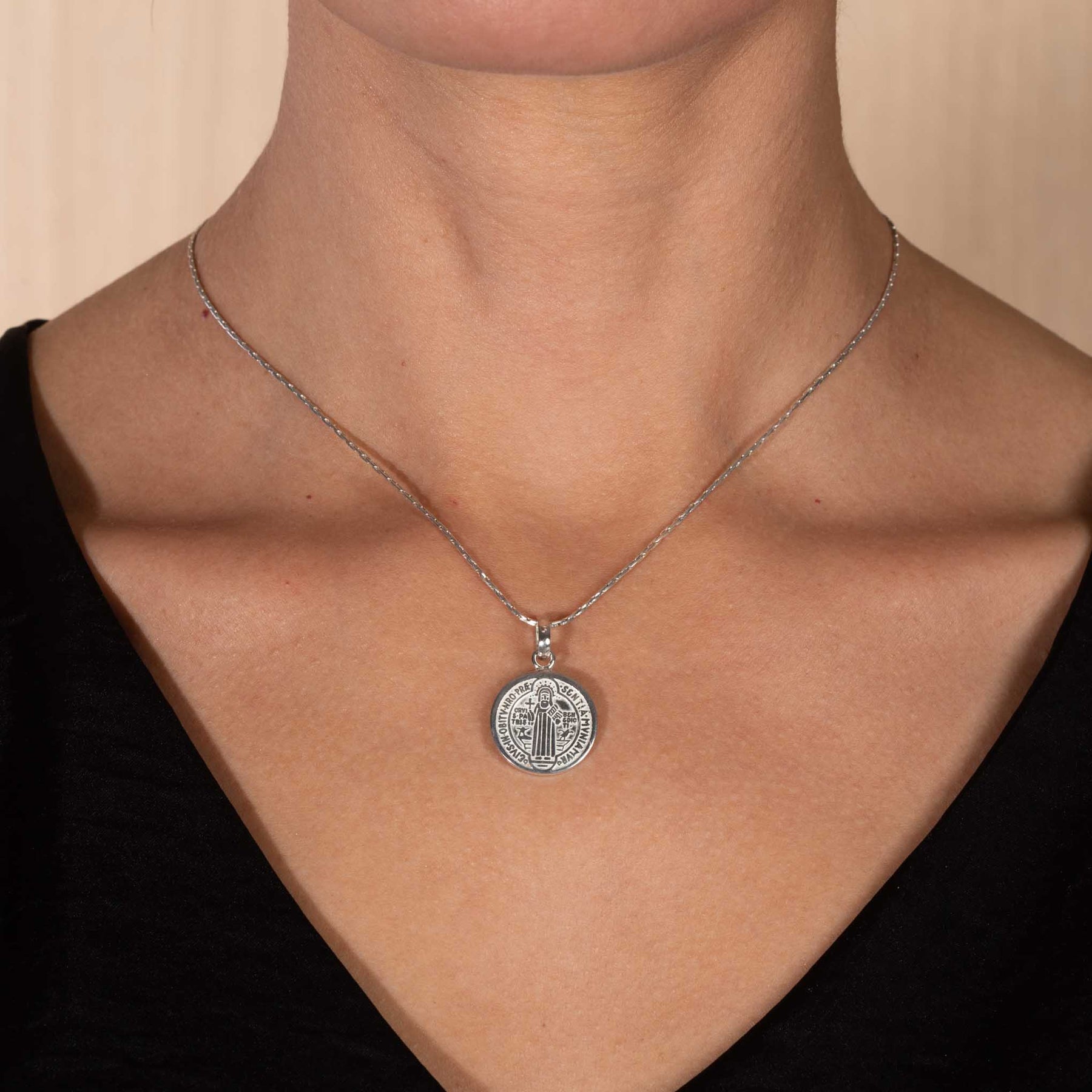 Medalla mediana de plata .925 grabada con la cruz y San Benito, siendo una pieza con un significado que representa la protección del peligro o mal y que la puedes portar por siempre. Ideal para usarla con alguna de nuestrascadenas Descubre nuestra increíblespulseras de San Benito
