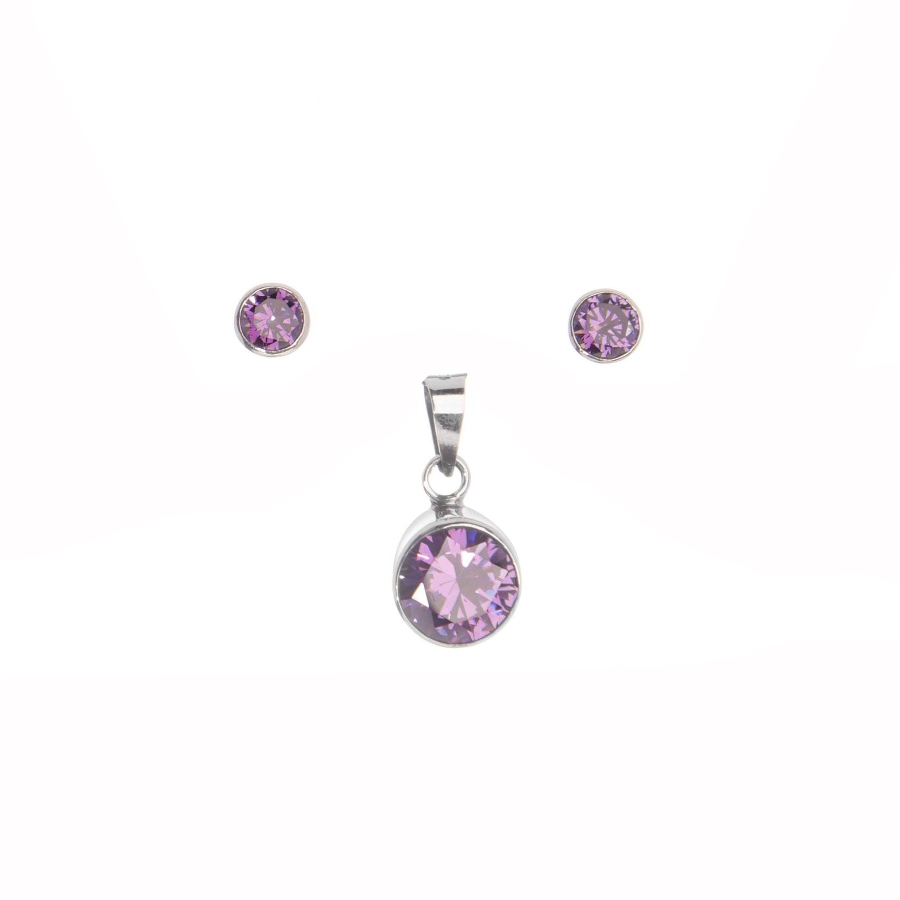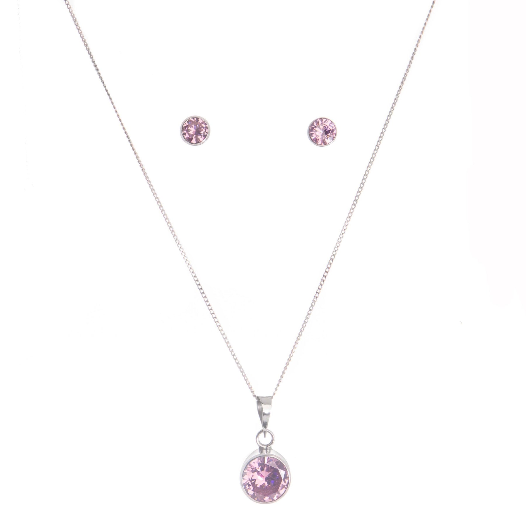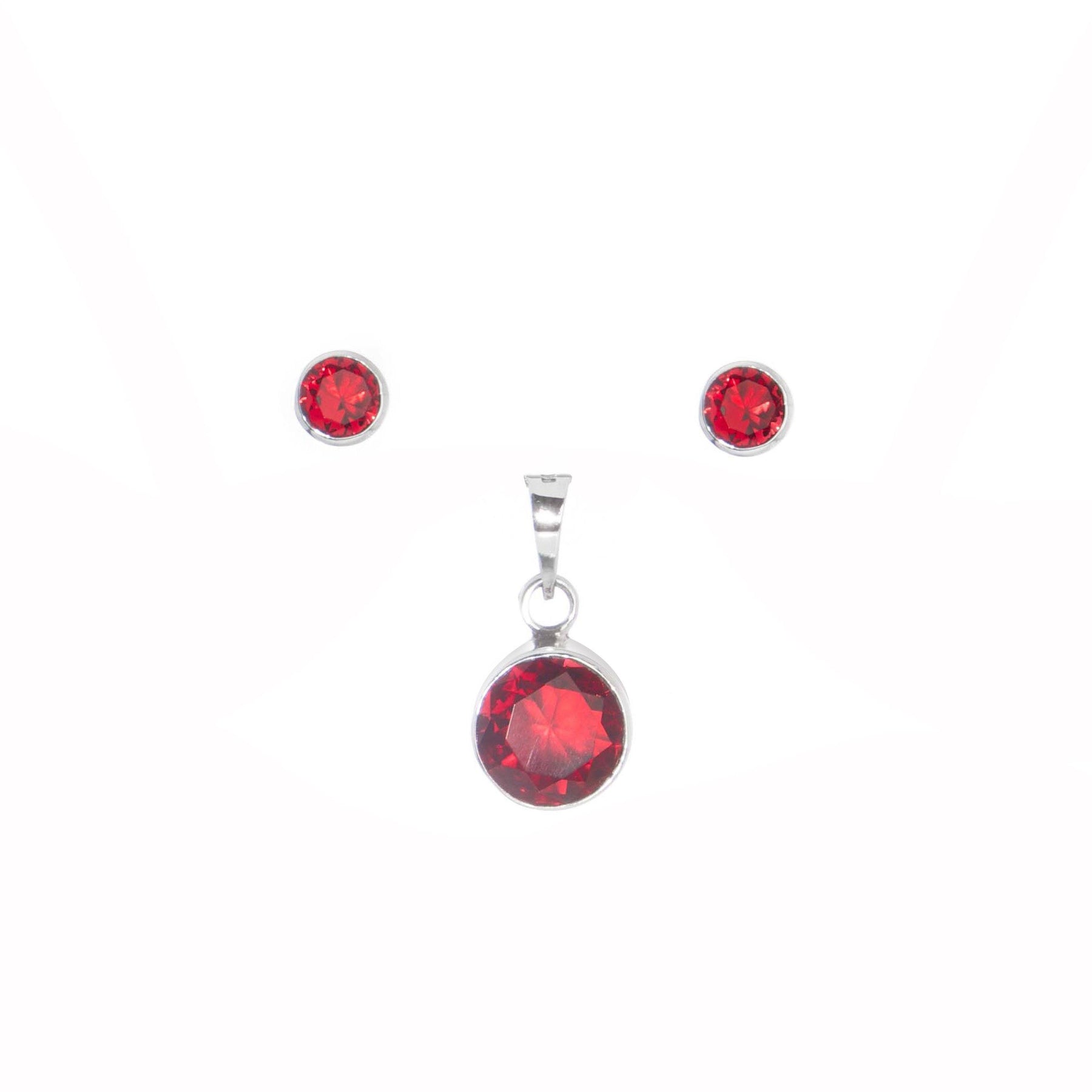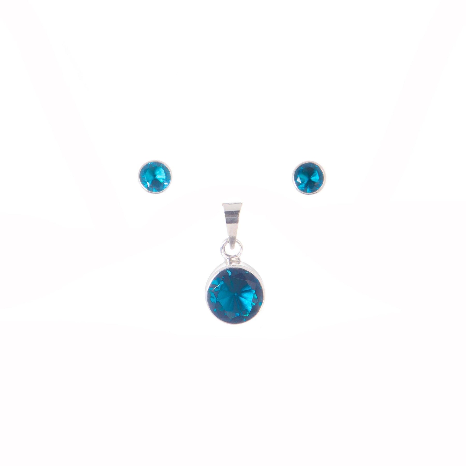 Juego de zirconia redonda biselada en plata