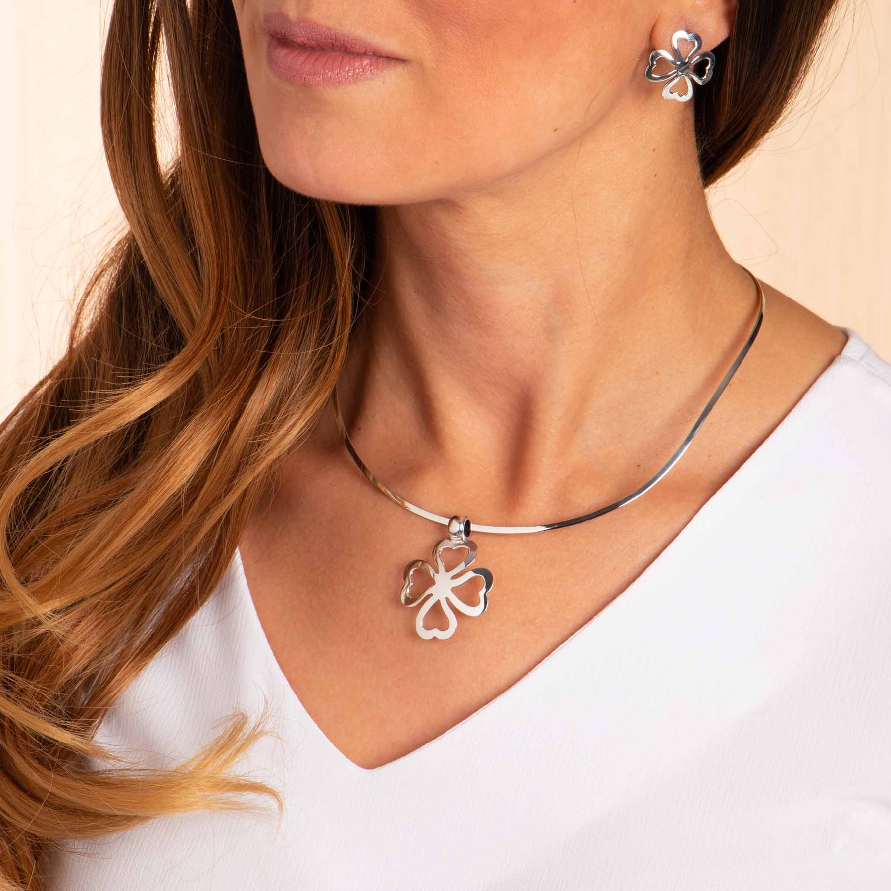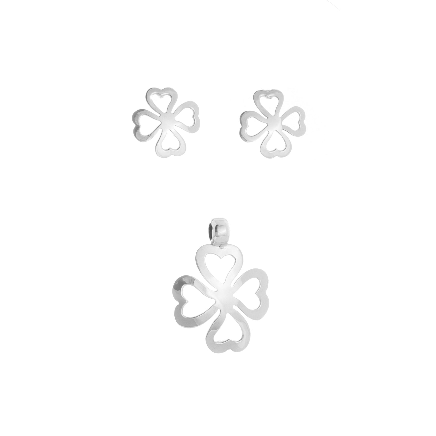 Naturaleza y suerte una combinación perfecta, este hermoso juego de Plata ley .925 posee un diseño inspirado en la planta de la suerte, nos referimos al trébol, te podemos garantizar que no pasaras desapercibida ante los ojos de los demás, es el juego perfecto para usar con todo tipo de ropa, desde algo más cotidiano, hasta algo elegante y fino.